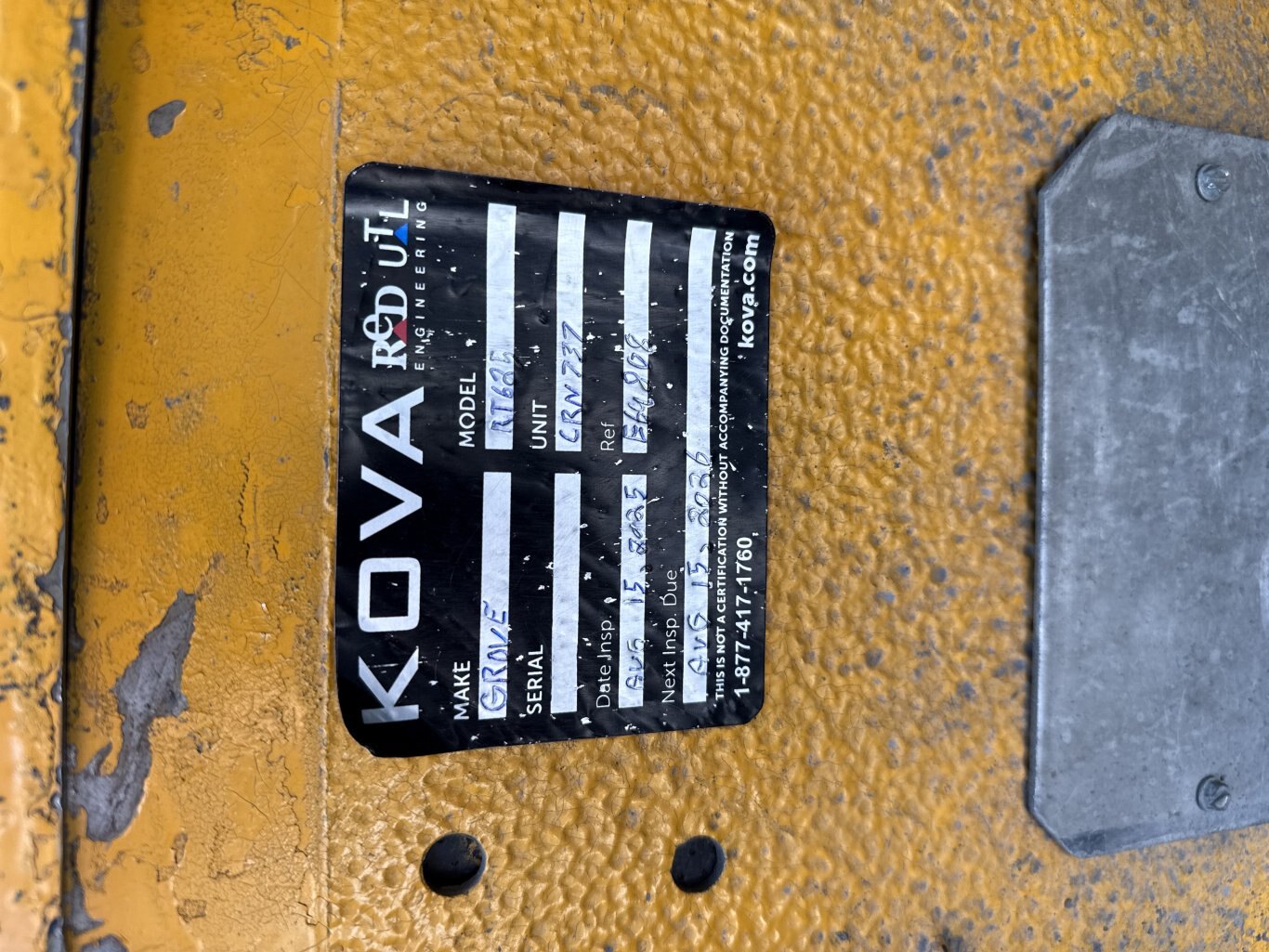 • Last Crane Inspection Date: August 15, 2025 (Good Until August 15, 2026)