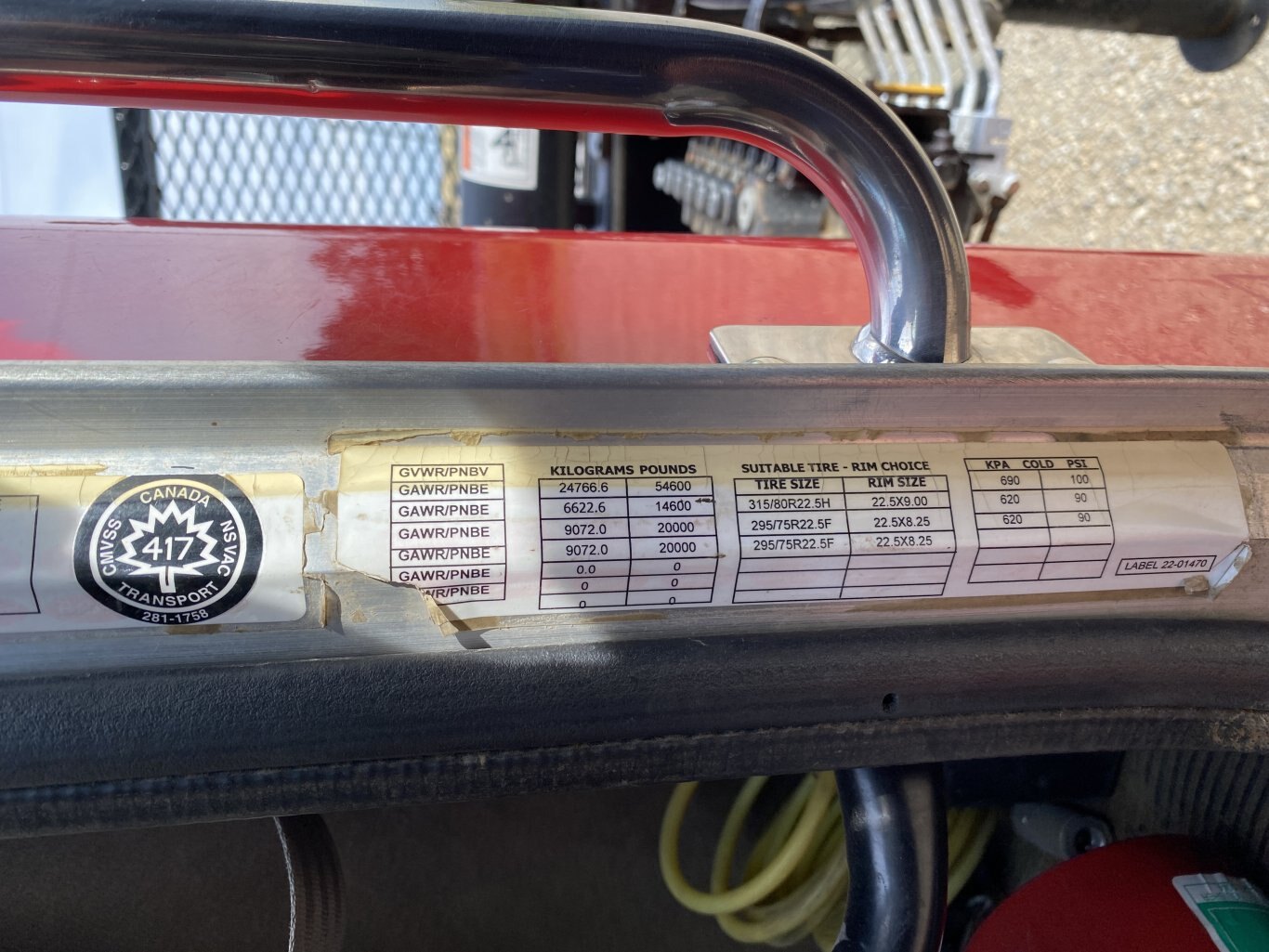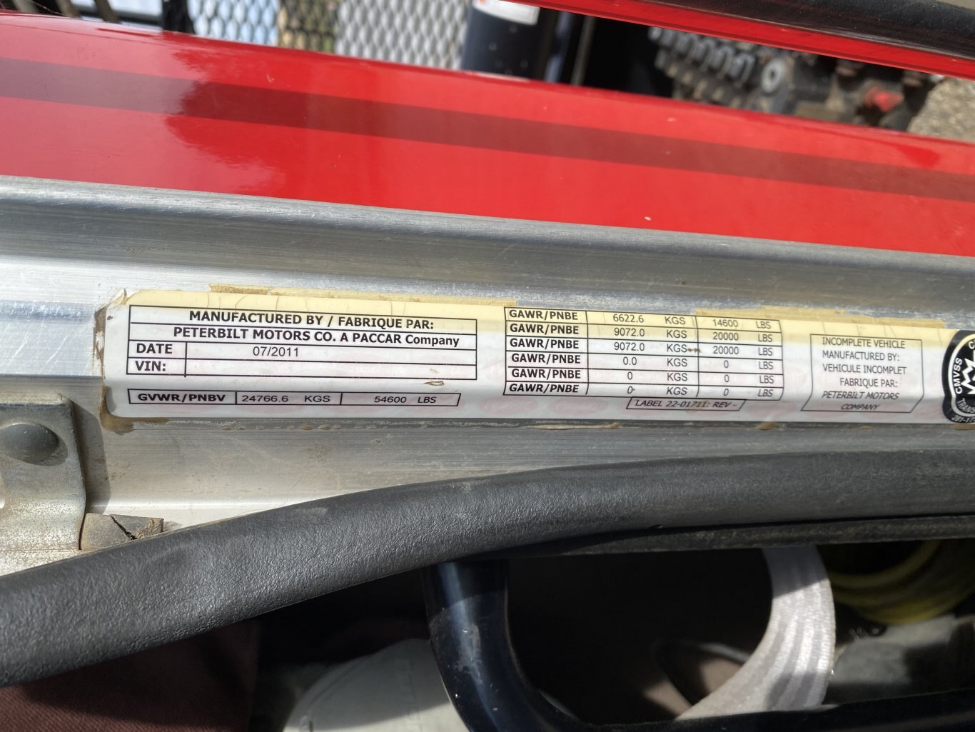 • GVWR: 24,766 kg • GAWR Front: 6,622 kgs • GAWR Rear: 9,072 kg x2