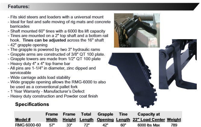 Skid Steer Mat Grapple Conterra RMG-6000